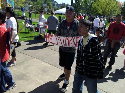 rch began 1:30 pm from an outlying community…and ended at Maritime Heritage Park in Bellingham’s downtown district. After twice getting lost, thanks in no part to my new phone’s GPS, and its inept operator, we made it in time to see the marchers arrive. They were all ages, shapes, and sizes. One old man was pushed in a wheelchair the entire route. I later learned he had lost his feet in the fields to frostbite. An array of speakers spoke to the group as an endless Mexican buffet awaited marchers and spectators alike.